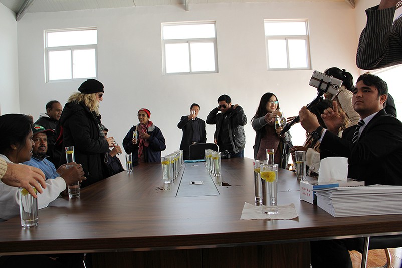 這也在拍,那也在拍,看來這些外國專家對咱們的云臺冰菊很有興趣么~各類膚色的人聚在一起共同賞菊品菊,場面和諧極了,看來不僅藝術(shù)能促進(jìn)各國間的文化交流,農(nóng)業(yè)照樣有聚集人心的魅力?。?/p>